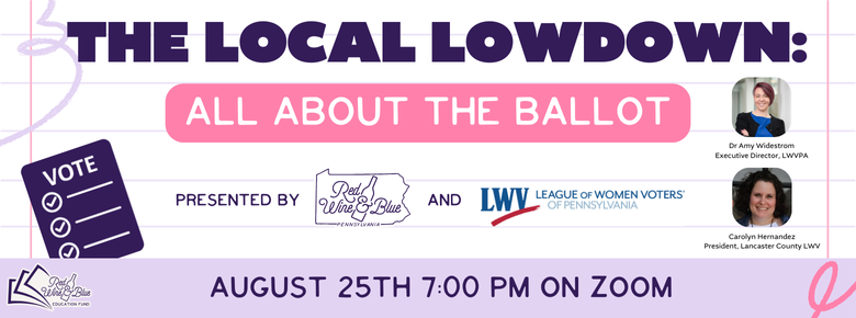 Join Red Wine and Blue PA and the League of Women Voters PA for a no-nonsense, high-impact virtual event that will turn confusion into confidence at the ballot box.